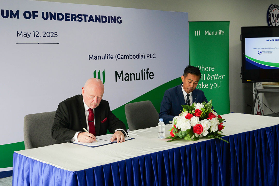 The American University of Phnom Penh (AUPP) and Manulife (Cambodia) Plc., signed a memorandum of understanding (MOU) on May 12, 2025, marking a shared commitment to equipping Cambodia’s next generation of leaders with the needed knowledge, experience and vision to thrive in a rapidly changing economy.