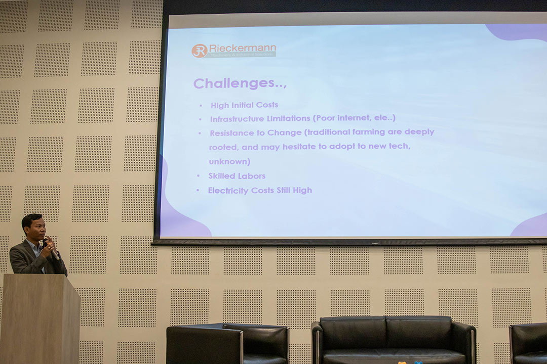 Chhorm Sothun, Sales & Service Engineer at Rieckermann Cambodia, a company that provides agricultural machinery and equipment solutions, including in food processing, presented on the main challenges the industry faces as observed through the company’s clients.