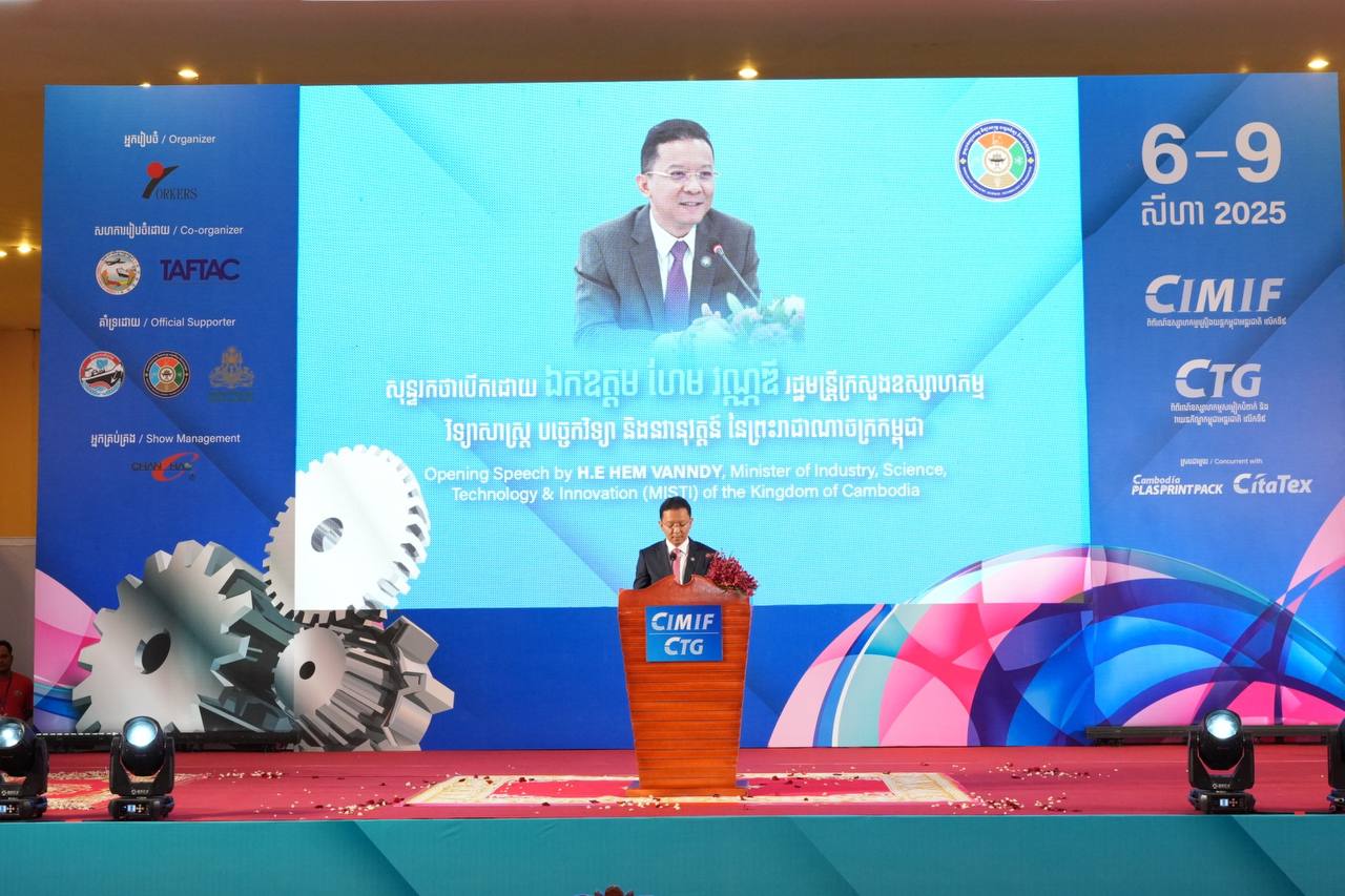 Cambodia’s premier Machinery & Garment Exhibition — CTG & CIMIF 2025 — officially opened on August 6, 2025, at the Diamond Island Exhibition and Convention Centre in Phnom Penh. Presiding over the ceremony, H.E. Hem Vandy, Minister of Industry, Science, Technology and Innovation (MISTI), highlighted the importance of industrial innovation and regional trade in Cambodia’s economic development.