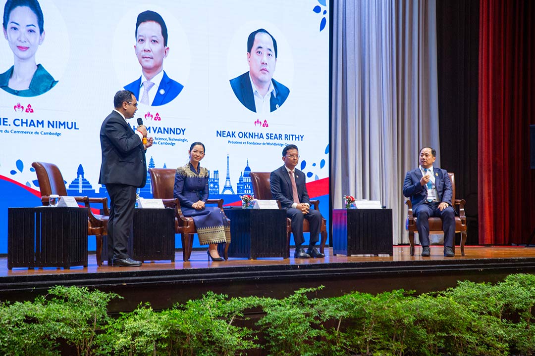 Another panel discussion focused on the industrial and commercial attractiveness of Cambodia for French investors, featuring H.E Cham Nimul, Minister of Commerce; H.E Hem Vanndy, Minister of Industry, Science, Technology, and Innovation (MISTI); and Neak Oknha Sear Rithy, Founder and Chairman of WorldBridge Group.