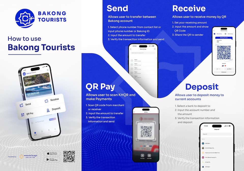- Once topped up, users can pay using the KHQR payments on the Bakong Tourists App, withdraw the remaining funds, transfer between Bakong accounts, or deposit into local bank accounts.