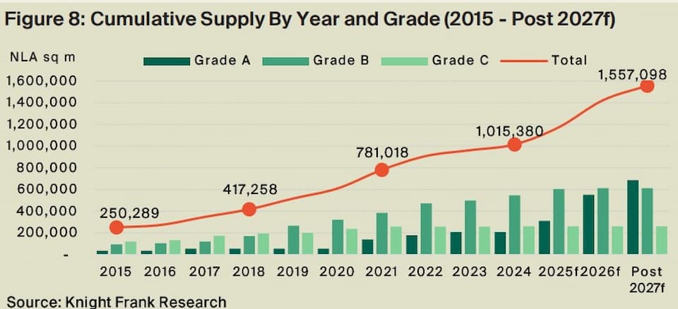 According to the report, the office market is poised for stabilisation in 2025. Knight Frank anticipates that by 2028 the supply is projected to increase to 1,557,098 sqm of net lettable area (NLA), representing a 53 per cent increase from the existing stock at the start of 2025.