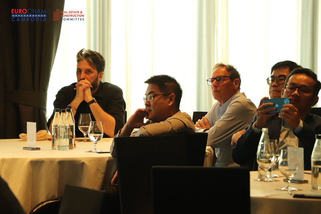 Opening the session, Michel Cassagnes, Chairman of EuroCham’s Real Estate & Construction Committee, and Regional Managing Director of Archetype Cambodia, Laos & Vietnam, highlighted the importance of affordable housing as a cornerstone for Cambodia’s long-term social and economic development. His remarks were followed by Sok Sam On, Deputy Director General at the Ministry of Land Management, Urban Planning and Construction, who outlined the Royal Government’s priorities and strategies for ensuring adequate housing for low- and middle-income households.