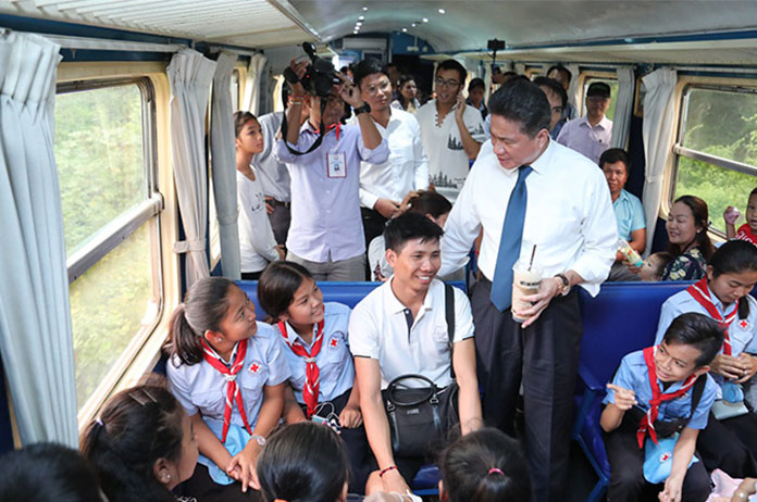 The launching ceremony was presided over by Sun Chanthol, the Minister of Public Works and Transport, and took place at Serey Sophorn’s railway station.