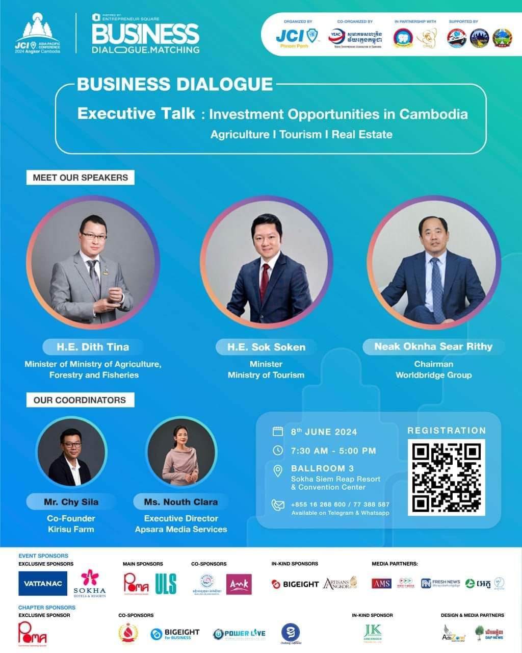 Junior Chamber International Cambodia - Phnom Penh (JCI Cambodia-Phnom Penh) is organising the ‘Business Dialogue and Matching’ event – as part of the ‘JCI ASIA PACIFIC CONFERENCE ANGKOR 2024’ – on June 8, 2024 at the Sokha Angkor Resort in Siem Reap.
