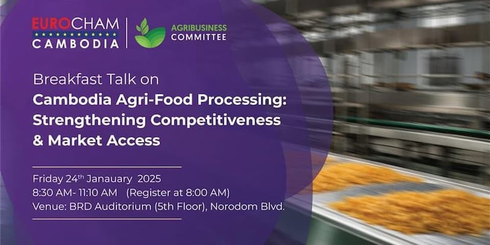 EuroCham Cambodia is hosting a Cambodian agri-food processing event in January 2025 in Phnom Penh to discuss the challenges (and respective opportunities) in the sector.
