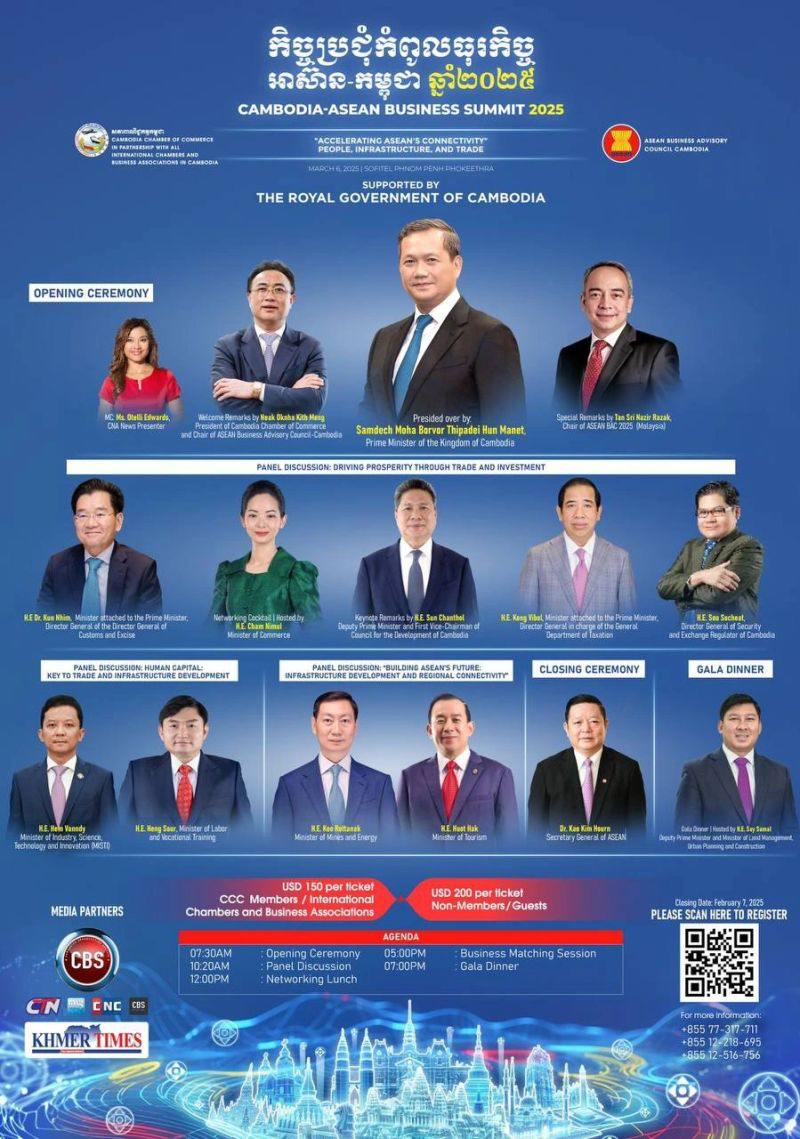The Cambodia-ASEAN Business Summit 2025 is being held at the Sofitel Phnom Penh Phokeethra on March 6 2025 and will feature senior Cambodian government officials as the theme of the summit is “Accelerating ASEAN's Connectivity".