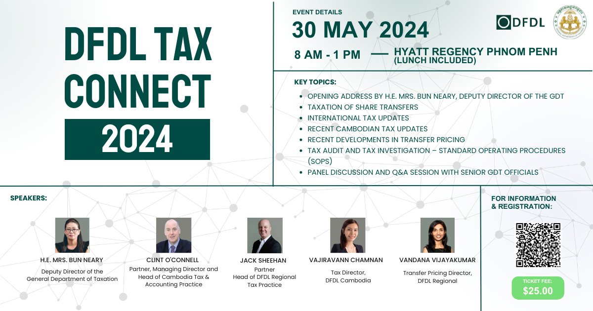 DFDL Cambodia is holding ‘DFDL Tax Connect 2024: Navigating the Evolving Tax Landscape in Cambodia’ on May 30, 2024 at the Hyatt Regency Phnom Penh.