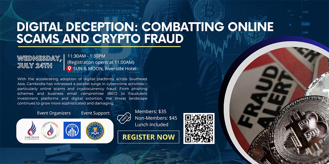 AmCham Cambodia is organising a luncheon event focused on ‘Combatting Online Scams and Crypto Fraud’ at the SUN & MOON Riverside Hotel on July 24, 2025.