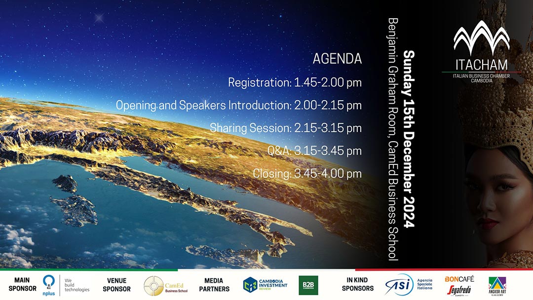 The main highlight of the event will be a panel discussion held on December 15 from 2-4 PM, moderated by Dr. Riccardo Corrado, Vice-Chairman and Associate Professor at CamEd Business School, featuring the following Italian and Cambodian industry professionals: