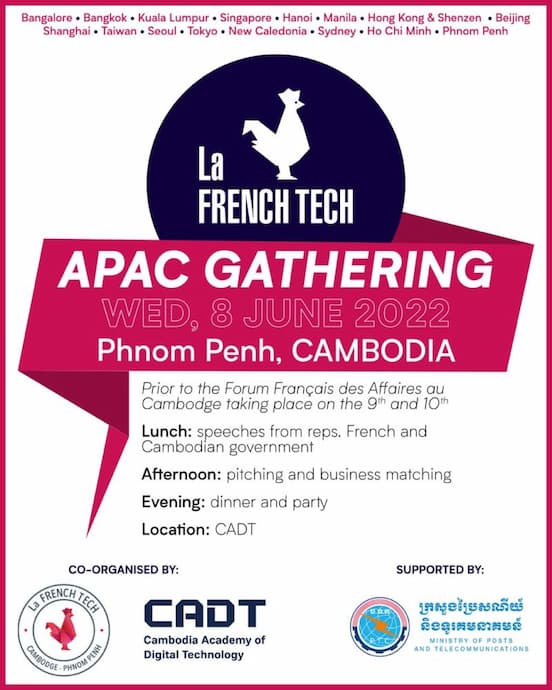 French Tech Cambodge in partnership with the Cambodia Academy of Digital Technology and the Ministry of Posts and Telecommunications is hosting the La French Tech APAC 2022 meeting in Phnom Penh on June 8, 2022.