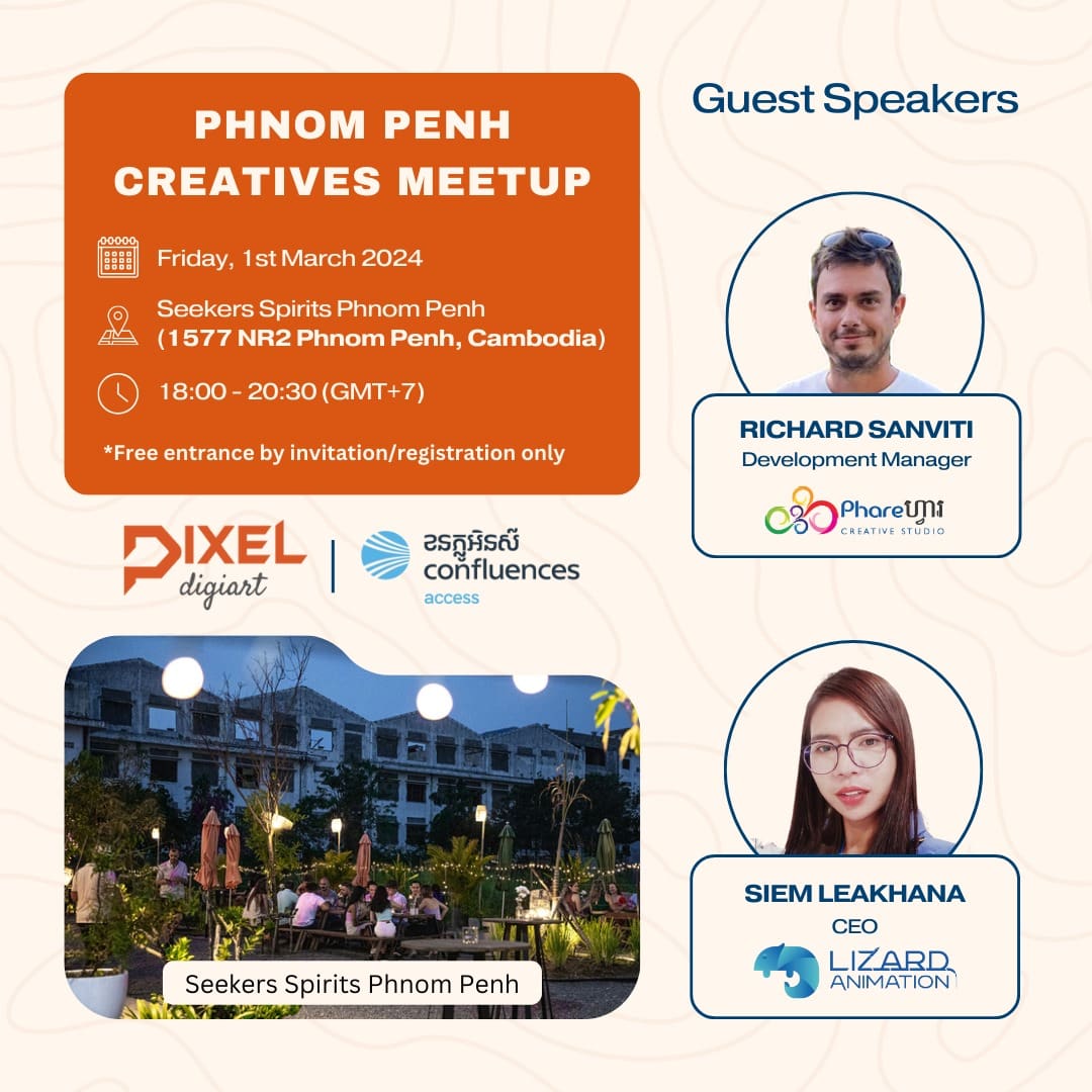 ERAI Pixel and Confluences are organising a Phnom Penh Creatives Meetup on March 1, 2024 at Seekers Spirits Phnom Penh.