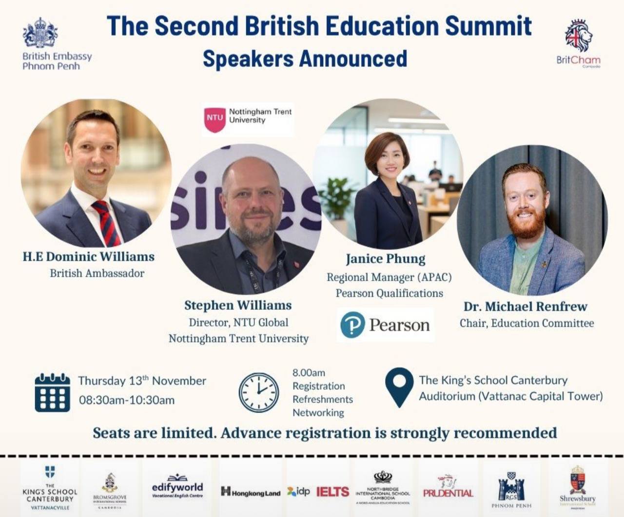 BritCham Cambodia, in collaboration with the British Embassy in Cambodia, is proud to present the 2nd British Education Summit, happening next Thursday, 13 November, from 8:30–10:30 AM at The King's School, Vattanacville, Vattanac Capital Building.
