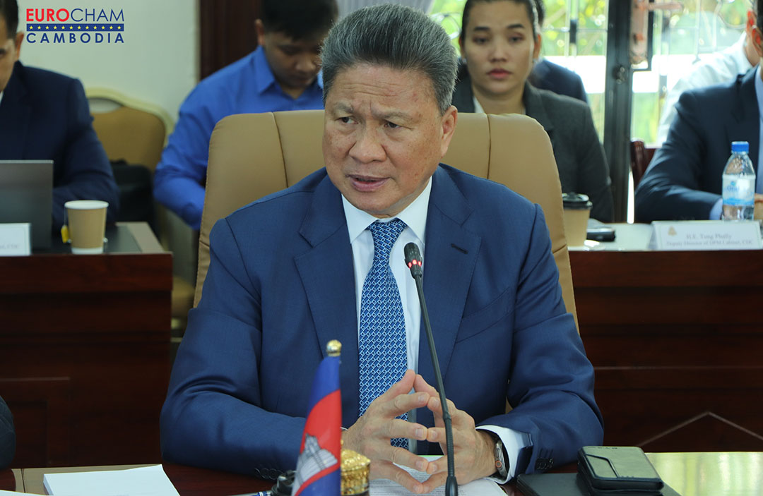 The session opened with remarks by H.E. Sun Chanthol, Deputy Prime Minister and First Vice-Chairman of the CDC, Gabriele Faja, Chairperson of EuroCham Cambodia, and Ambassador Igor Driesmans of the European Union Delegation in Cambodia.