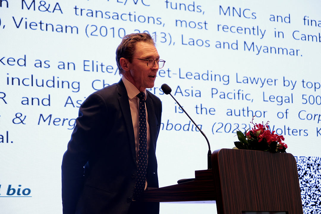 Stephen Higgins, Managing Partner at Mekong Strategic Capital (MSC), provided an overview of the current economic situation in Cambodia, particularly in light of the border conflict with Thailand.