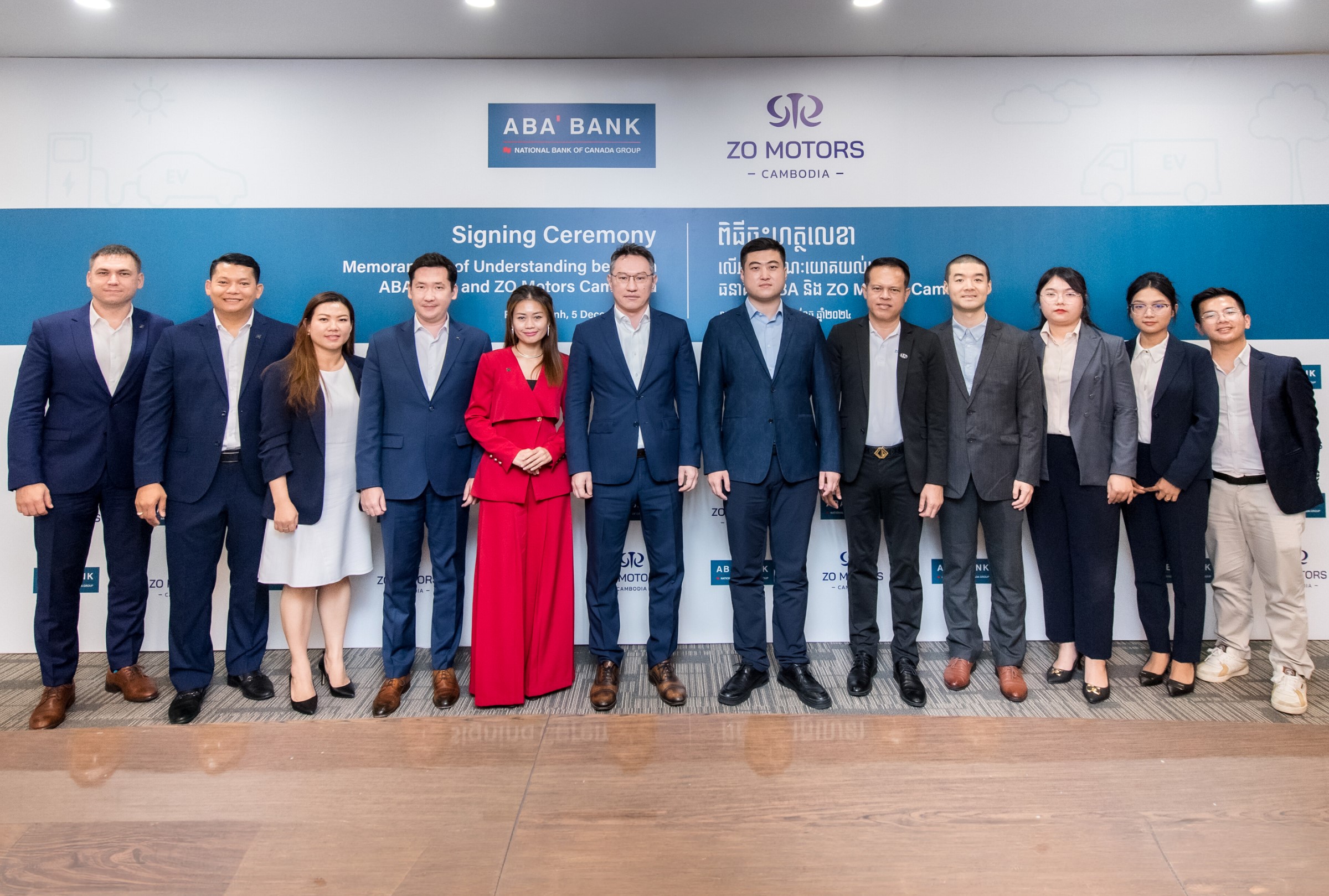 The MoU signing ceremony was held on 5 December 2024, with the attendance of ABA's Chief Executive Officer, Askhat Azhikhanov, and ZO Motors (Cambodia)'s Chief Executive Officer, Zhao Wenbo, and their respective teams at the ABA Bank Head Office.