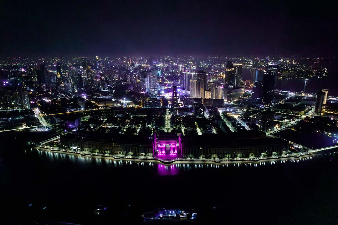 Koh Pich’s Elysée Tower was illuminated in pink this weekend while offering free breast cancer screenings for women as part of Breast Cancer Awareness Month.
