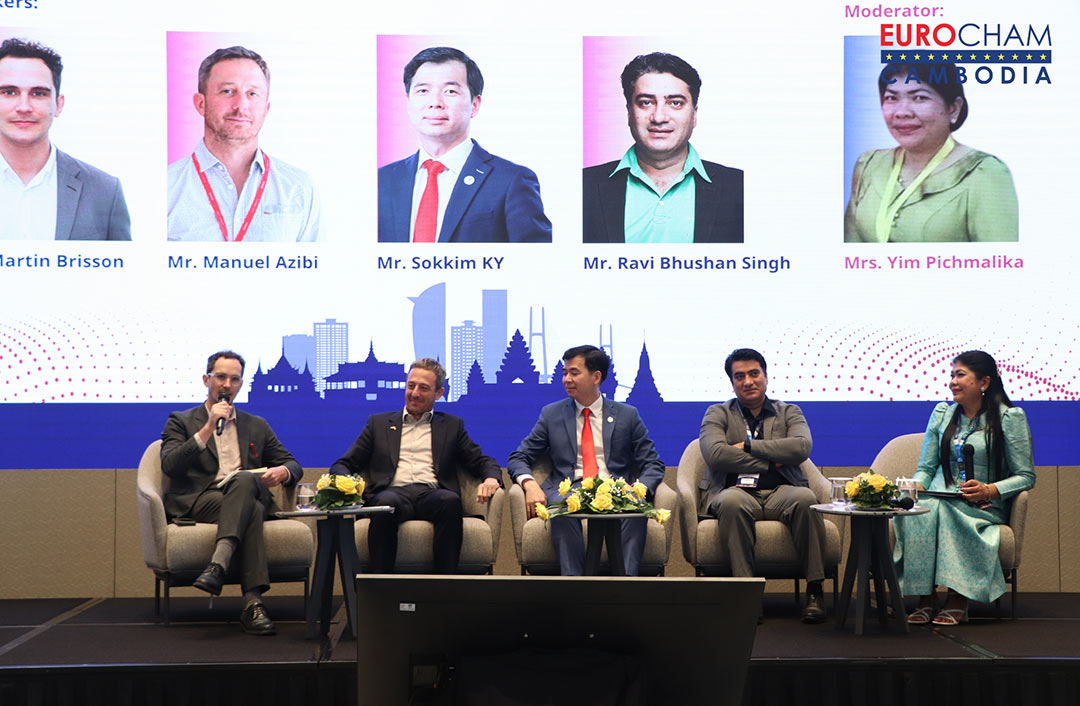 EuroCham Cambodia’s Executive Director, Martin Brisson, contributed to the high-level panel on Public-Private Partnerships for Critical Skills Development, moderated by Yim Pichmalika, Deputy Director General of DGTVET, MLVT Cambodia. Speaking alongside Manuel Azibi, Resident Twinning Advisor of the EU-Cambodia Twinning Project, Sokkim Ky, CEO of the Skill Development Fund, and Ravi Bhushan Singh, Director of Global Institutional Affairs, Sustainability at Schneider Electric, Brisson emphasised the crucial role of the private sector in aligning TVET curricula with industry needs.