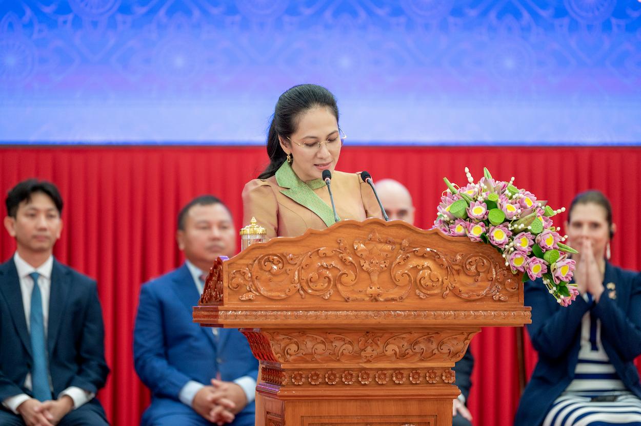 During her speech, H.E. Dr. Pich Chanmony reflected on the limited access to information during her youth in contrast to today’s digital landscape, where students can access knowledge from anywhere in the world. She expressed pride in Cambodian youth for creating their own apps and even robots, which she had previously thought were only possible in other countries.