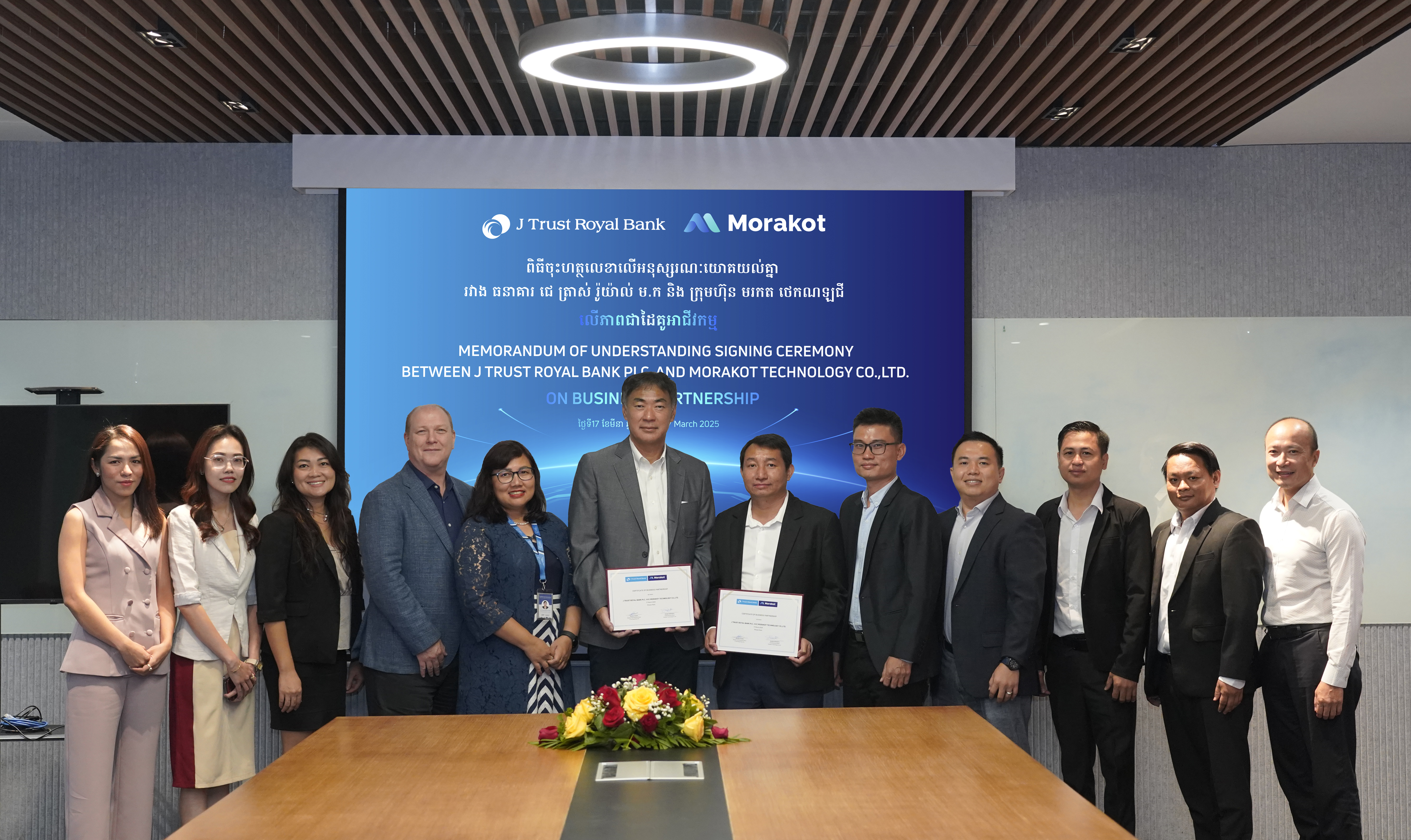 J Trust Royal Bank and Morakot Technology entered into business partnership through the signing of a Memorandum of Understanding (MoU) at J Trust Royal Bank Head Office on March 17, 2025. The objective is to collaborate on integrating their software applications with the goal of enhancing digital payment solutions for small and medium-sized enterprises (SMEs).
