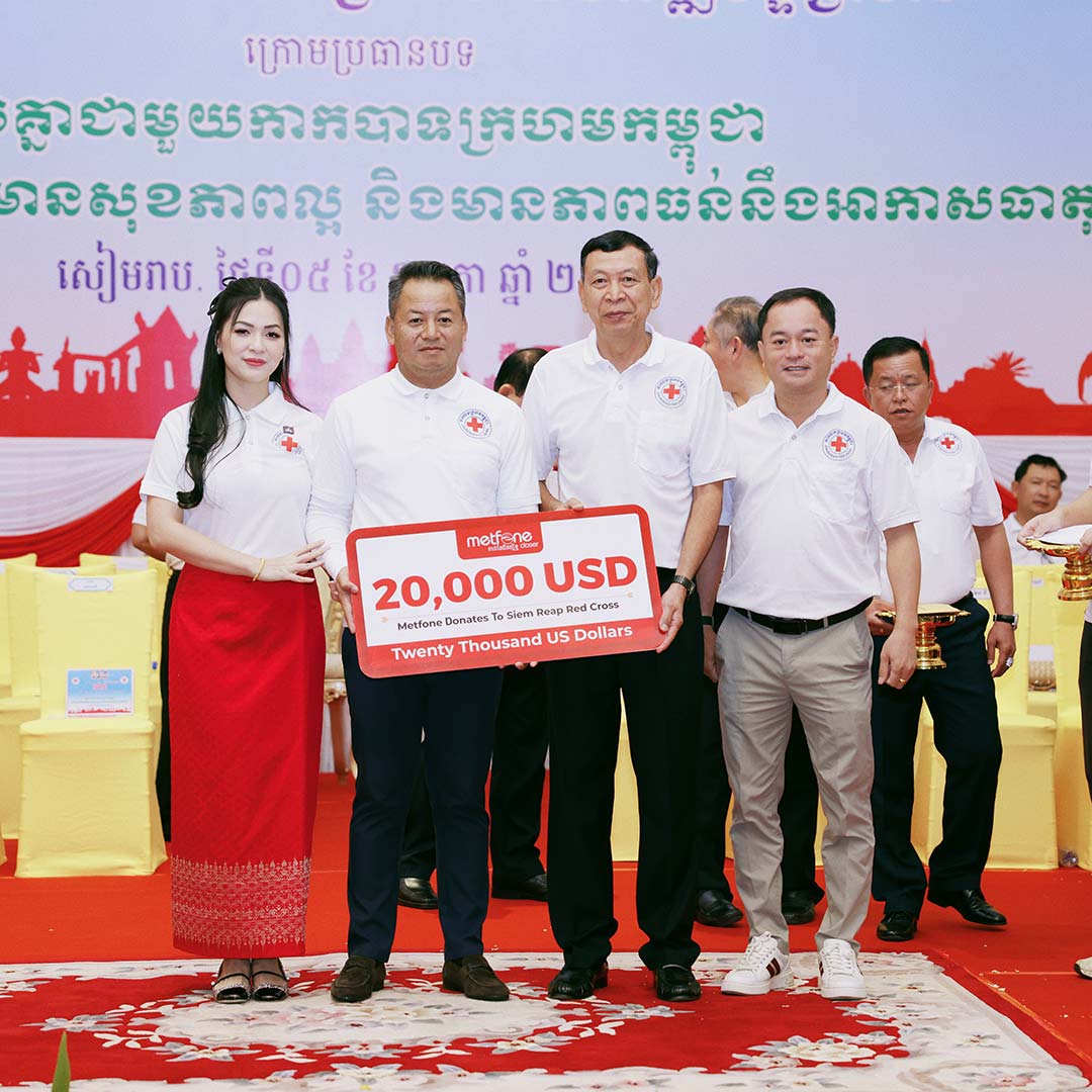 Commemorating the 161st anniversary of the establishment of the World Red Cross and Red Crescent Day, Metfone has donated USD $100,000 to the Cambodian Red Cross (CRC), and USD $20,000 to the Siem Reap branch of the CRC.