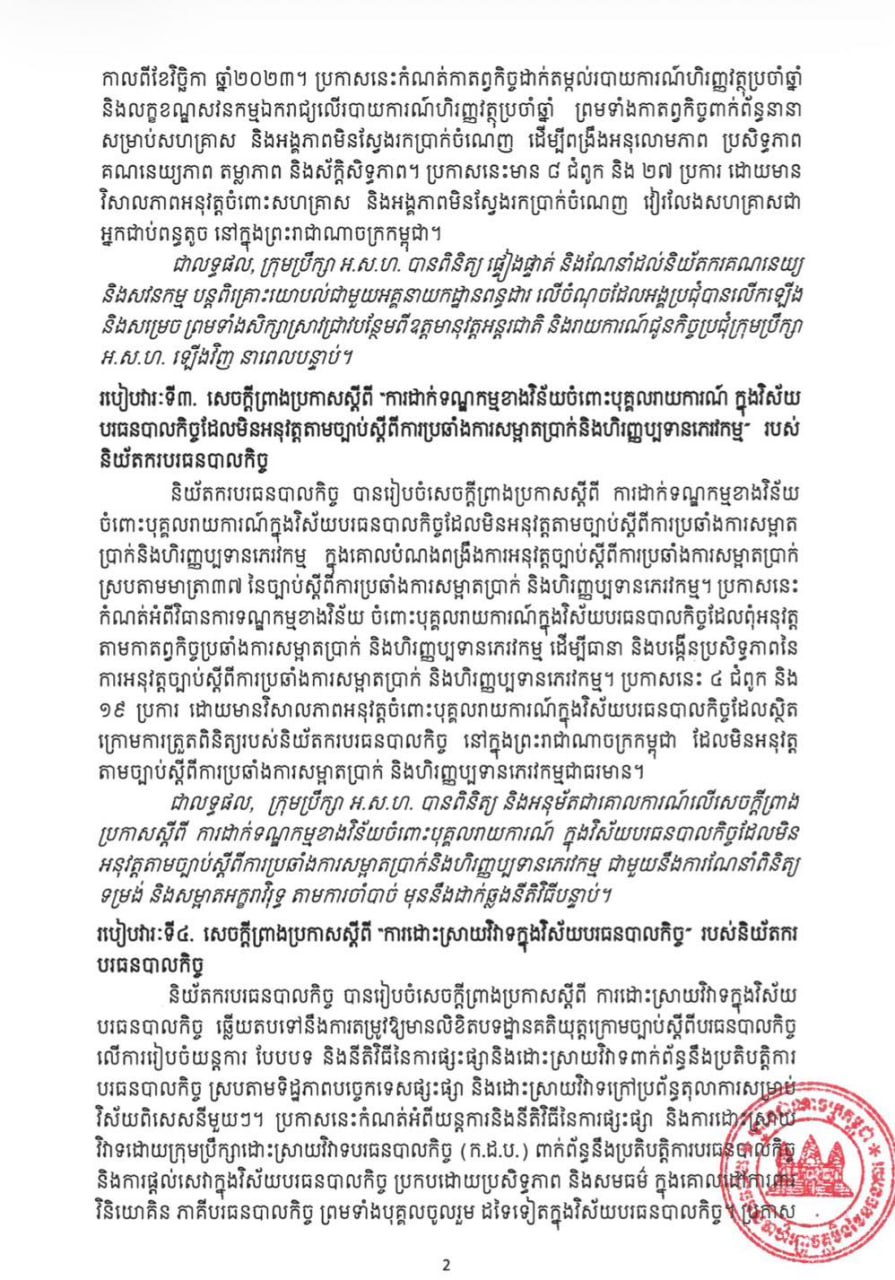 - Prakas on ‘Disciplinary Sanctions Against Reporting Entities in the Trust Sector Who Fail to Comply with the Law on Anti-Money Laundering (AML) and Combating Financing Terrorism (CFT).