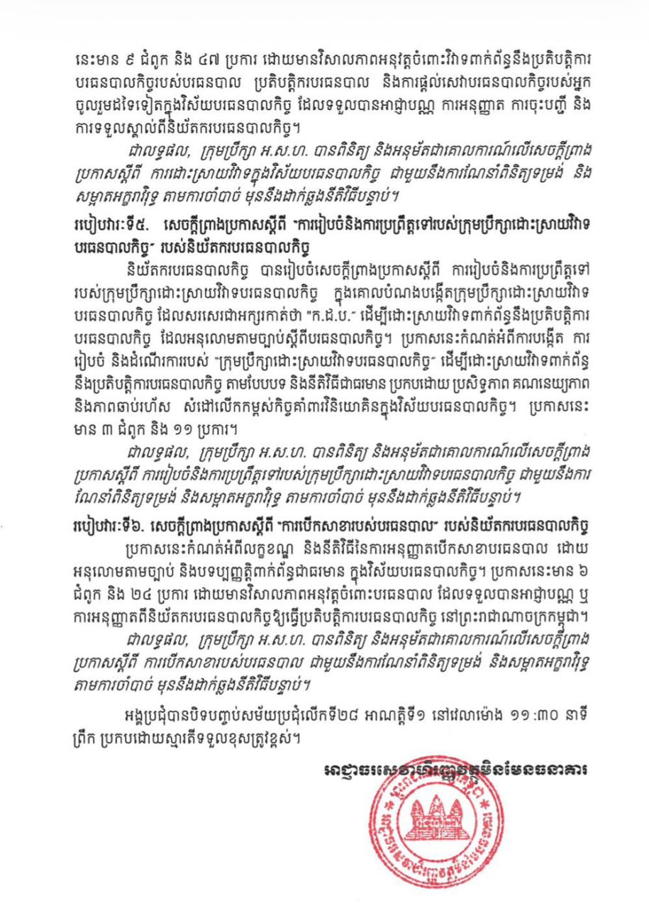 - Prakas on ‘Audit Quality Management and Assurance’, focused on audit quality control and closing legal gaps by clarifying roles, responsibilities, procedures, mechanisms and sanctions for audit firms and auditors with inadequate service quality.