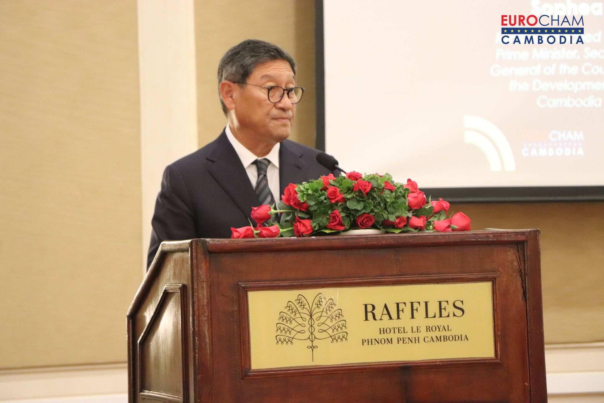 B2B Cambodia attended an Afternoon Talk hosted by EuroCham Cambodia on July 13, 2023 at the Raffles Hotel Le Royal in Phnom Penh. The event began with opening remarks from Mr. Cyril Girot, Vice-Chairman of EuroCham Cambodia, and His Excellency Sok Chenda Sophea, Secretary General of the Council for Development of Cambodia (CDC).