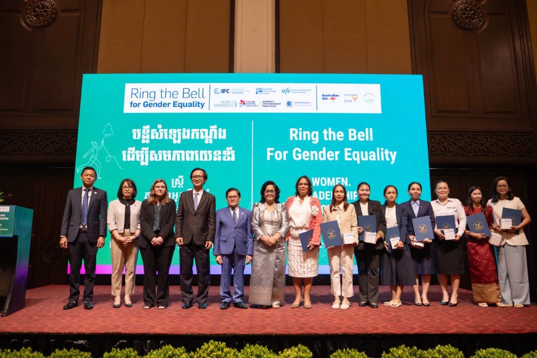 It was the 2nd annual Ring the Bell for Gender Equality event organised in Cambodia, under a global campaign that includes the participation of 114 stock exchanges worldwide, advocating for women’s empowerment in the workplace, marketplace and community.