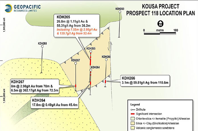“The board of Geopacific Resources Ltd (Geopacific) is pleased to provide results on the gold and silver discovery at Prospect 118 of the Kou Sa project in Cambodia,” the company said. “This is the second discovery this year, resulting from the completing drilling programme with the drilling target defined from soil sampling and trenching programmes.”