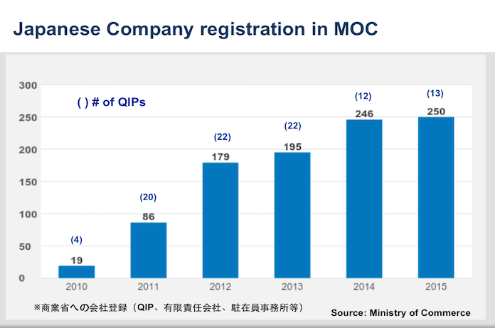 Japan’s private sector is one of the biggest investors in Cambodia’s construction industry. Across all sectors of the economy, in 2015 Japanese companies invested over $56 million in projects as diverse as garment factories, shopping centres or comic book repair studios, according to figures provided by the Japanese International Cooperation Agency (JICA). Last year, 250 Japanese companies registered with the Ministry of Commerce, a number only slightly higher than the one recorded in 2014, which was 246. The number of Japanese Quality Investment Projects, or QIPs, increased slightly from 2014 to 2015 (from 12 to 13), however, this is a notable drop from 2012, when 22 Japanese QIPs were awarded.