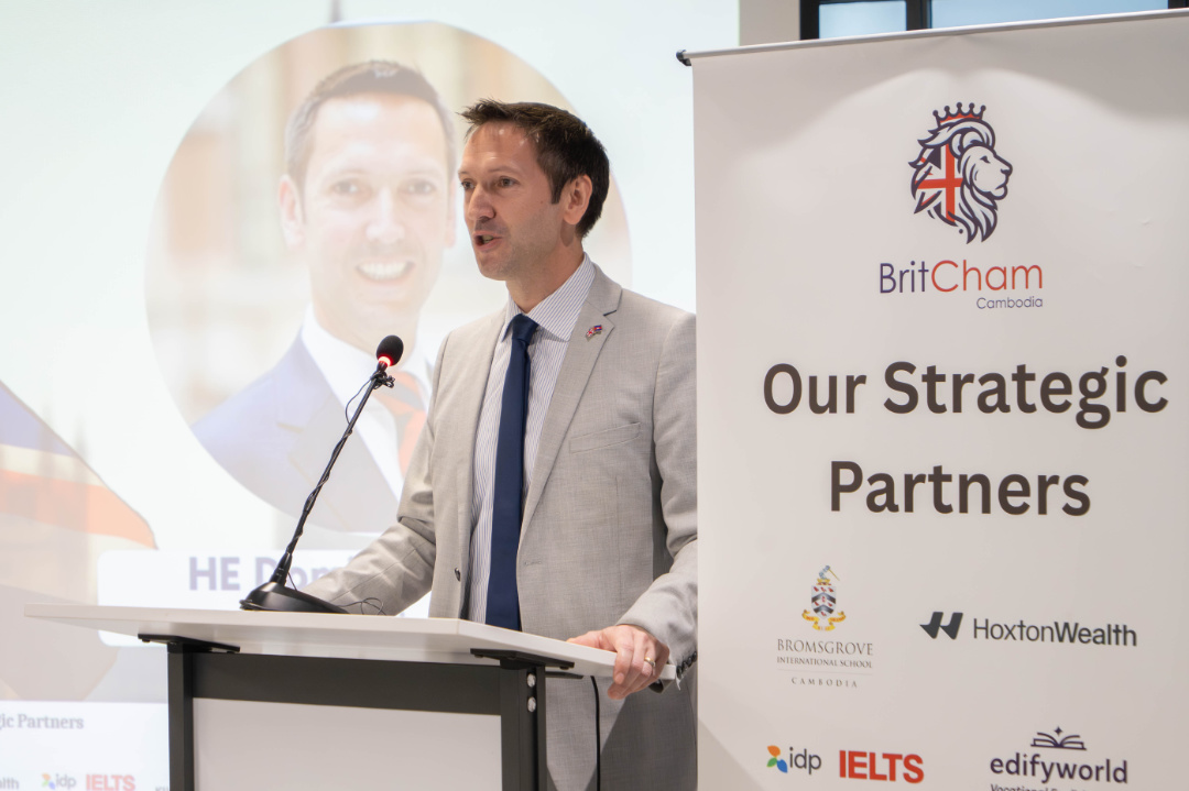 H.E. Dominic Williams, British Ambassador to Cambodia, noted the significant growth of British education in the Kingdom. He highlighted that two new universities have announced intentions to form transnational partnerships with Cambodia, bringing the total to four British universities operating in the country.