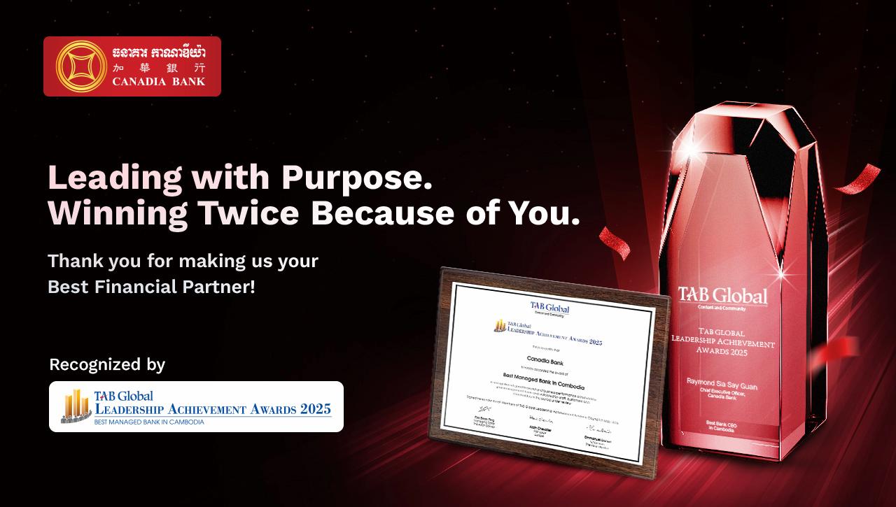 TAB’s Global Leadership Achievement Awards, held every three years, are among the most prestigious and selective accolades in the region’s financial industry. Canadia Bank’s recognition reflects its strong performance in financial resilience, business diversification, digital innovation, and inclusive finance—contributing meaningfully to Cambodia’s economic development.