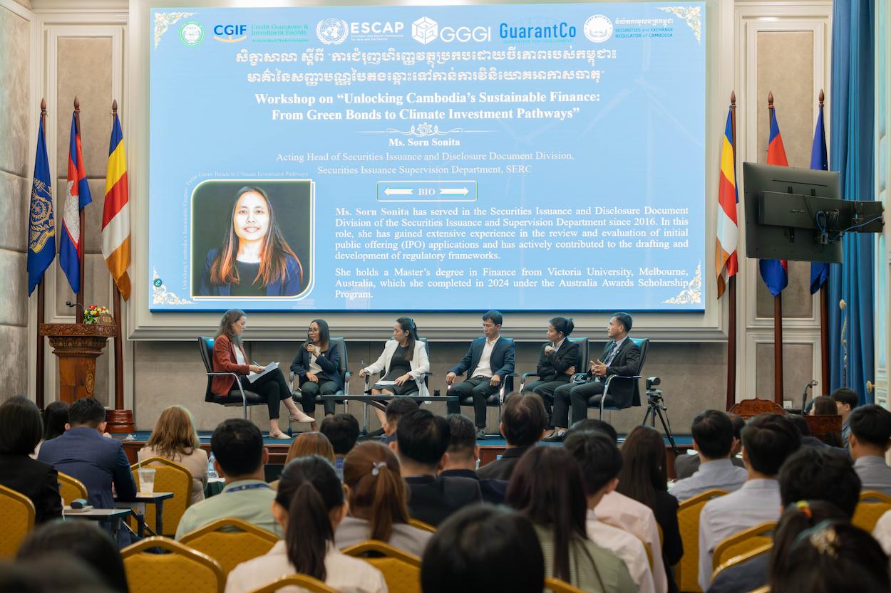 Experts from the UN Economic and Social Commission for Asia-Pacific (ESCAP), Securities and Exchange Regulator of Cambodia (SERC) and Global Green Growth Institute (GGGI) presented on unlocking key climate finance pathways for Cambodia at a workshop held at the Non-Bank Financial Services Authority (FSA) building on September 15, 2025.